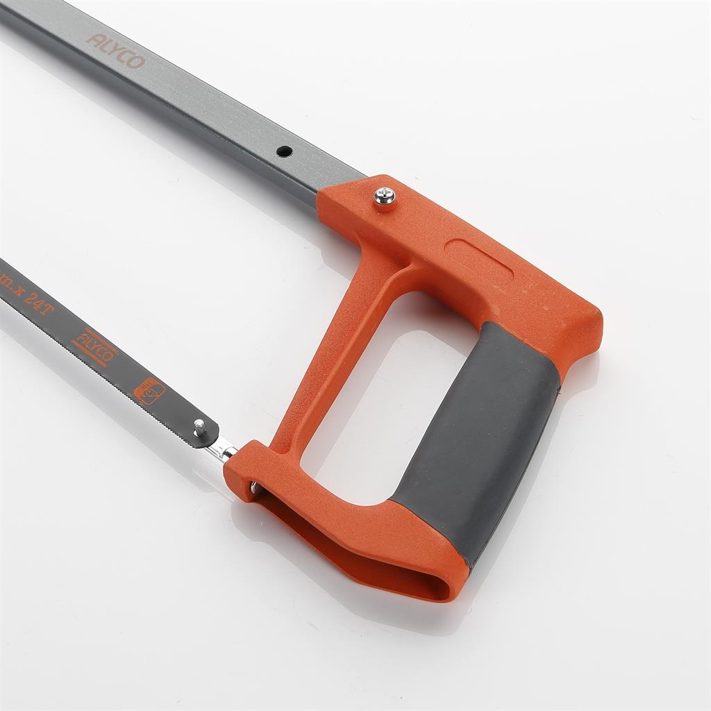Arco de sierra con cuerpo metálico y mango ergonómico.