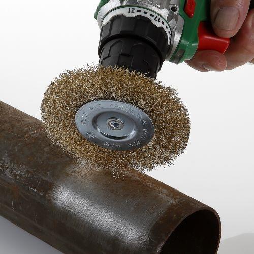 Cepillo cilíndrico ondulados con vástago ideal para la eliminación de óxidos, pinturas rebabas y adherencias en general. Especialmente diseñado para su utilización en máquinas portátiles, eléctricas o neumáticas.