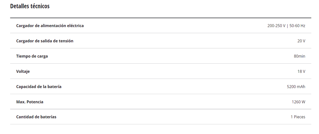 • √ Recomendación para resultados óptimos: Batería de 2.5 Ah y de mayor tamaño