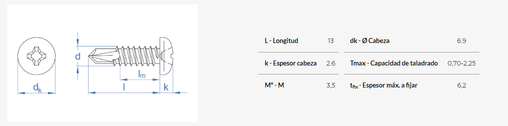 Tornillo autotaladrante de cabeza alomada. Zincado. Huella PH.